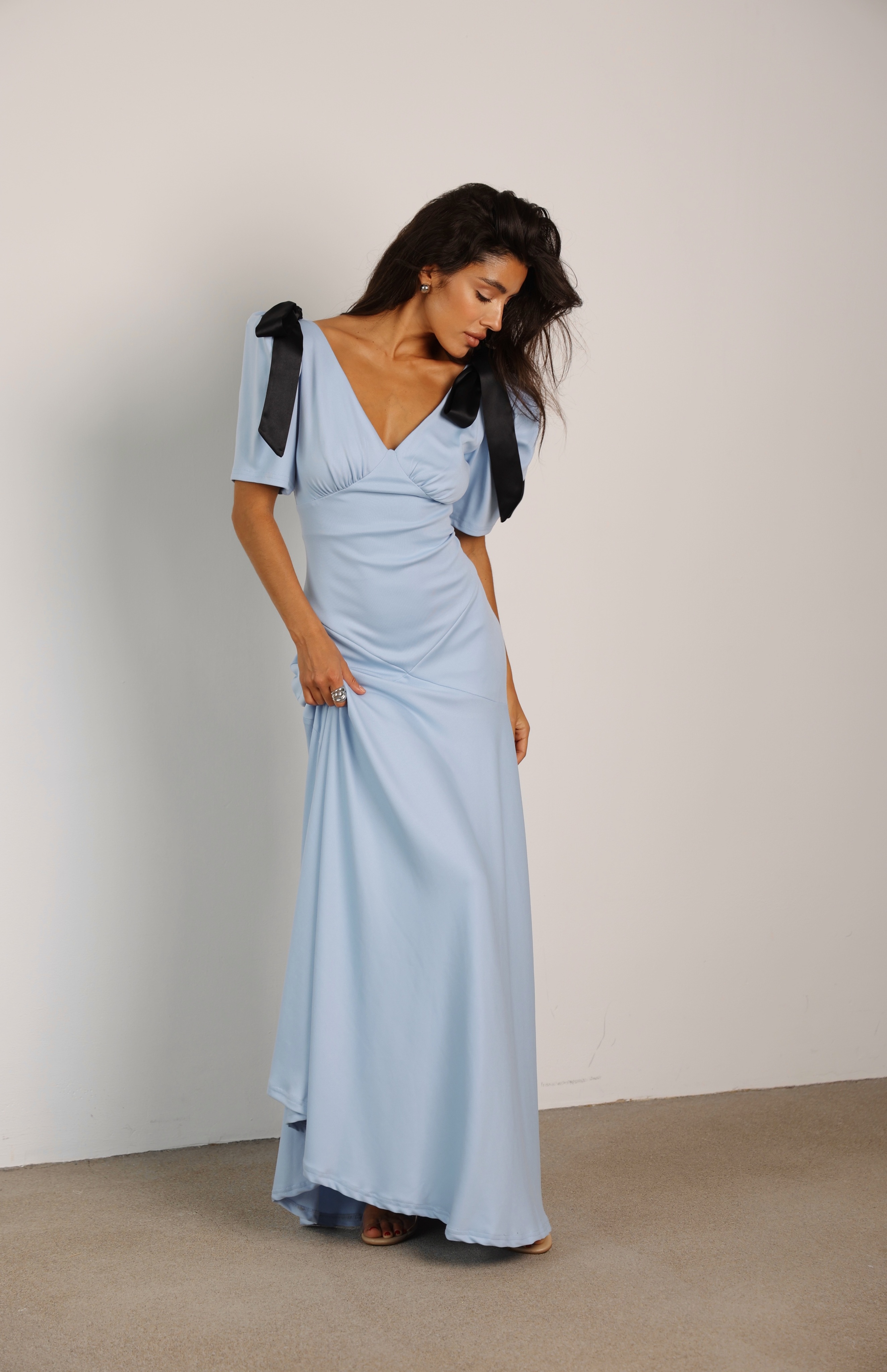 Рады представить новинку нашего бренда — самое трендовое вечернее платье предстоящего сезона! Длинное вечернее платье с приталенным силуэтом подчёркивает фигуру, придавая образу утончённости. Верх украшен рукавами-фонариками, создающими объём и добавляющими романтичности, а V-образный вырез выделяет зону декольте. Чёрные ленты на плечах придают контрастный акцент, делая наряд завершённым. Это белое женское платье идеально подойдёт для торжественных мероприятий таких как корпоратив, день рождения или же свадьба. Лёгкая струящаяся ткань создаёт воздушный и женственный силуэт, а пояс подчеркивает талию, формируя классический силуэт "песочных часов". Чёрные банты на плечах придают новогоднему наряду уникальность. Платье облегает фигуру, оставаясь при этом удобным и лёгким. Белое вечернее платье с длинной юбкой и воланами станет идеальным вариантом для свадьбы или выпускного. Закрытая спинка добавляет сдержанности, а белый цвет освежает общий вид, делая его более чистым и элегантным. Это платье макси подходит не только для особых событий, но и для фотосессий, создавая нежный образ. Наряд универсален и подходит для официальных и неформальных мероприятий, включая дни рождения. Платье на свадьбу всегда актуально, и если вы ищете платье для невесты подружкам, этот вариант идеально подойдёт. Этот наряд- отлчный подарок сестре, подружке. Это длинное женское платье гармонично сочетает в себе утончённую моду, классику и современные тенденции. Наряд также ассоциируется с трендами y2k и стилем Кендалл Дженнер, подчёркивая индивидуальность и актуальность образа.